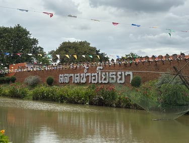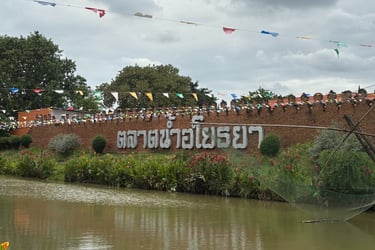 English: “Kong Khong Market & Boat Tour – Discover local Thai culture, taste traditional food, and enjoy Ayutthaya’s riverside scenery.”